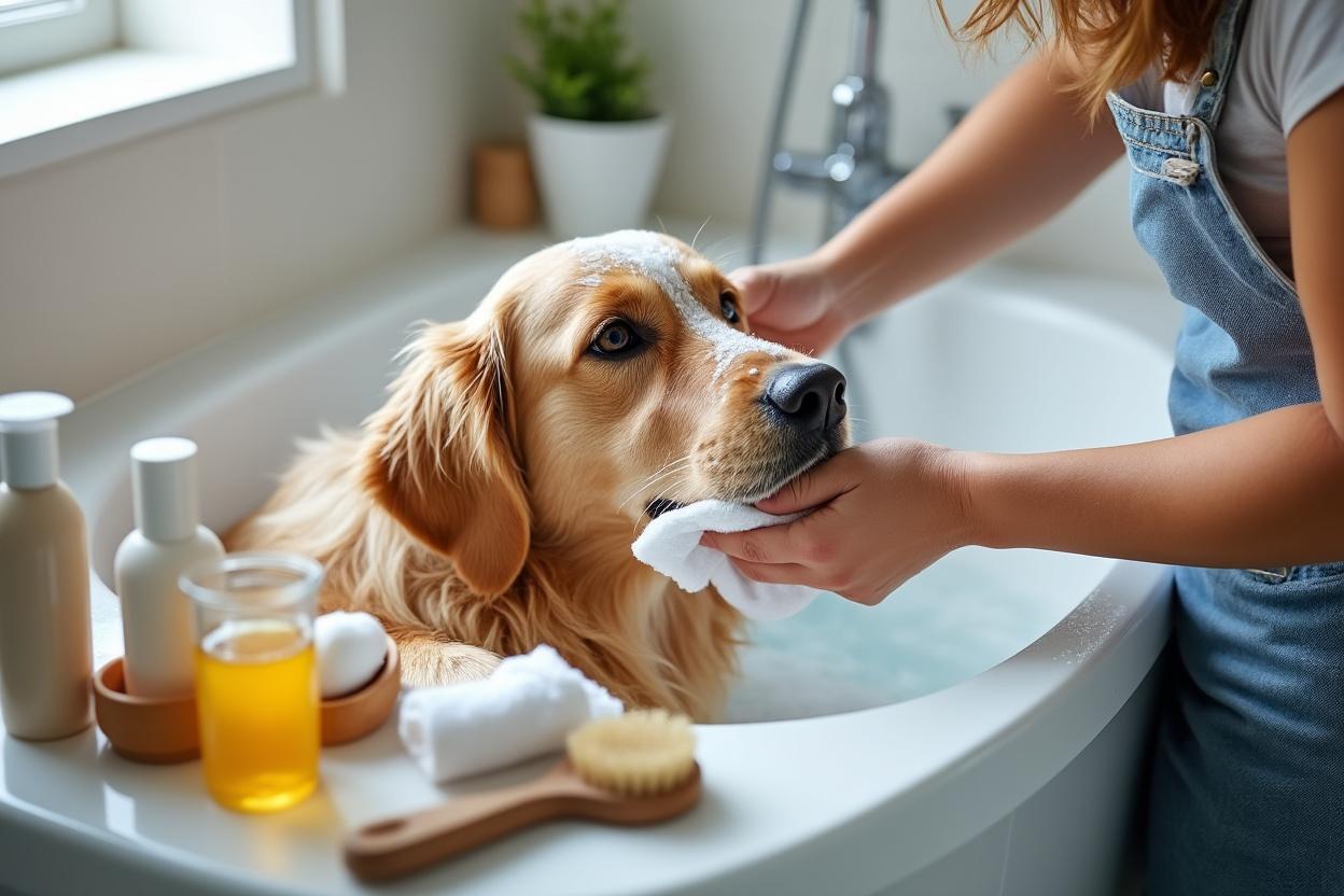 Choisissez un shampoing formulé pour chiens et respectez les temps de pose indiqués. Pour les animaux atteints de problèmes dermatologiques, suivez les recommandations du vétérinaire, qui peut prescrire un shampoing thérapeutique adapté.